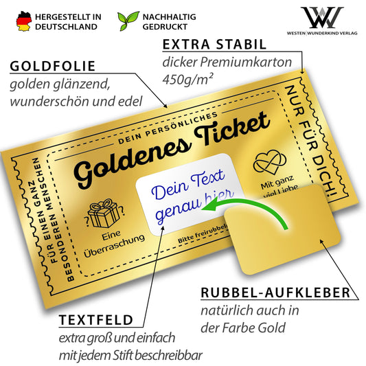 Das GOLDENE TICKET: Gutschein Karte zum selber ausfüllen mit Rubbelaufkleber